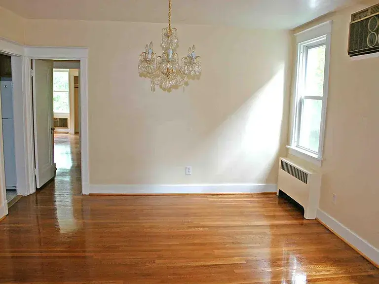 Great 1st fl non-smoking apartment with hardwood floors, window a/c, ceiling fans, updated bath and kitchen with dishwasher and disposal, integral garage, and free laundry. Unit is very large with two equal size bedrooms and 1 small bedroom/office. Large yard across from park. Neutered/Spayed cats ok